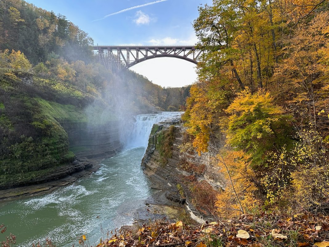 Photograph of autumn leaves in Letchworth Falls, New York, taken during my 2023 trip. The vibrant colors and serene landscape capture the essence of the season.
