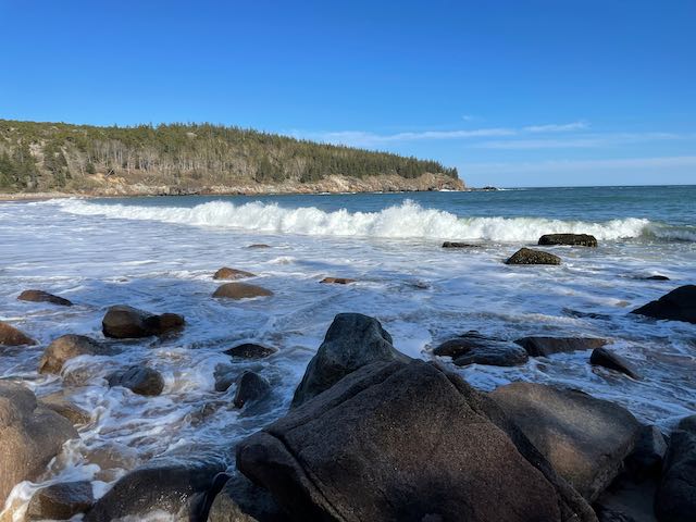 Description: Waves breaking on Sand Beach in Bar Harbor, Maine's Acadia National Park. Dynamic Atlantic coastal photography capturing ocean energy. Perfect for beach lovers and coastal New England decor.