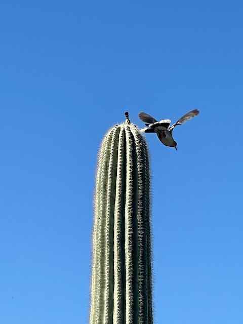 Description: Bird flying off of a cactus in Tucson, AZ