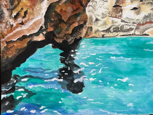 Description: Luminous watercolor painting inspired by the crystal-clear waters of Capri, Italy. Capturing the Mediterranean's vibrant blues and coastal magic. Perfect for beach house or Italian-themed decor.