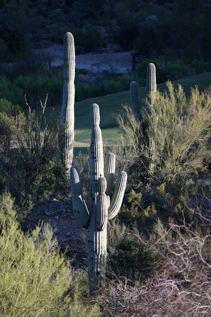 Description: Desert beauty captured at golden hour—silhouetted cacti against a stunning Arizona evening sky. Southwest landscape photography perfect for modern bohemian or desert-themed decor.