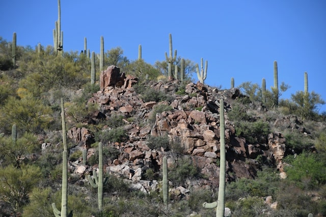 Description: Saguaros and Red Rocks