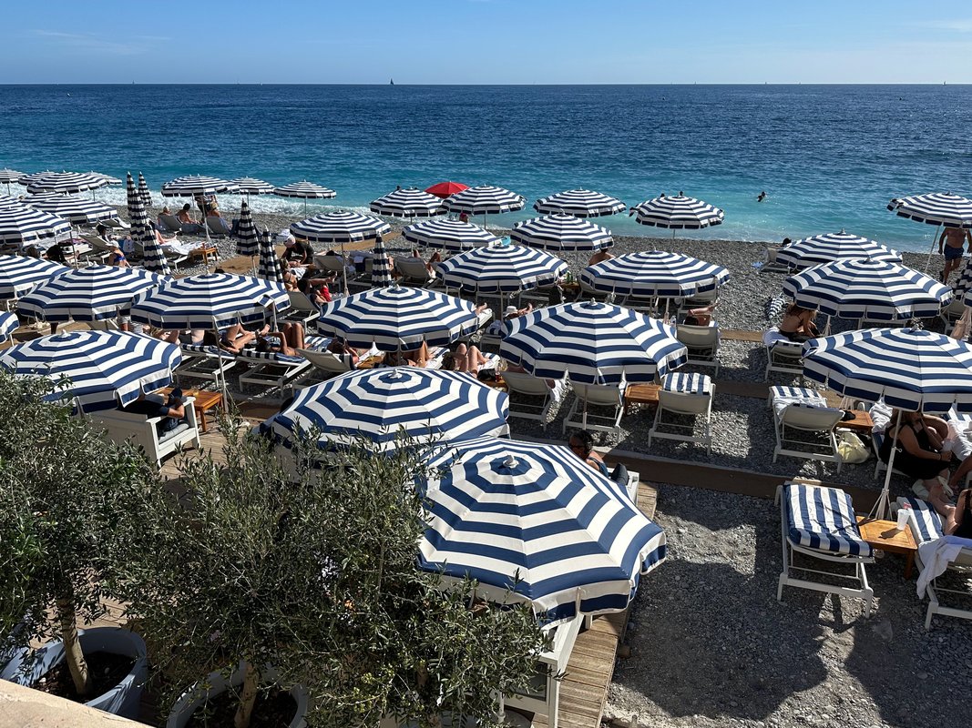 Umbrellas on the beach in Nice, France