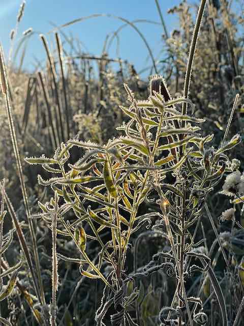 Description: Delicate frost crystals sparkling on morning grass in West Virginia. Serene winter nature photography capturing the beauty of cold mornings. Perfect for seasonal or minimalist decor.